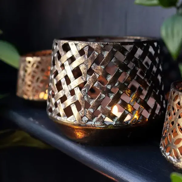 This round brushed gold tealight holder will be a beautiful addition to any table, mantlepiece or sideboard. Light up your home with this stunning piece in either vintage or modern interiors and make a unique statement.